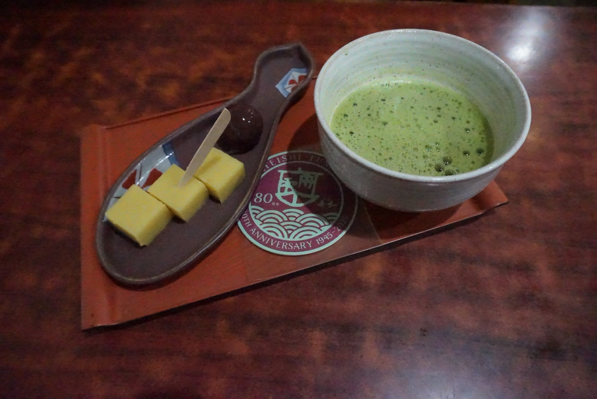 その愛情がたっぷり入っている手作りされた芋ようかんとお抹茶がこちら!
